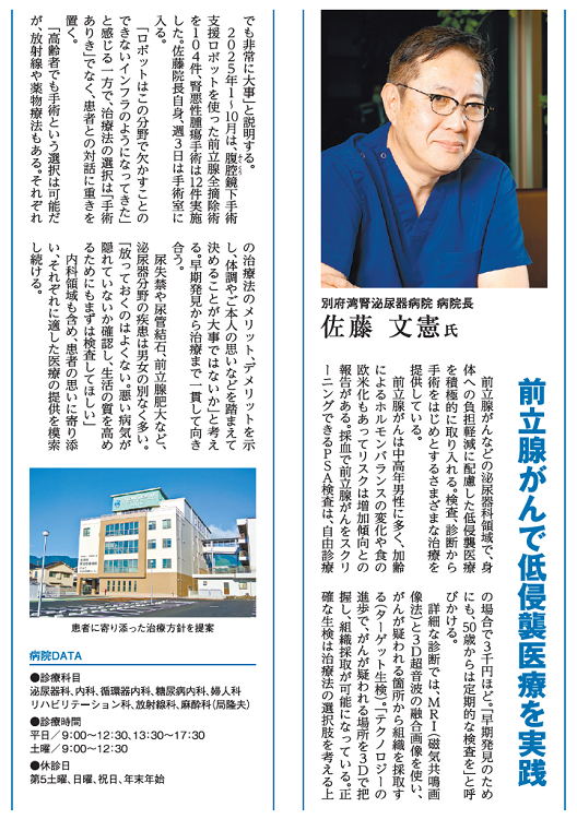 大分合同新聞の令和8年新年号における新春医療特集で、佐藤院長のインタビュー記事が掲載されました。